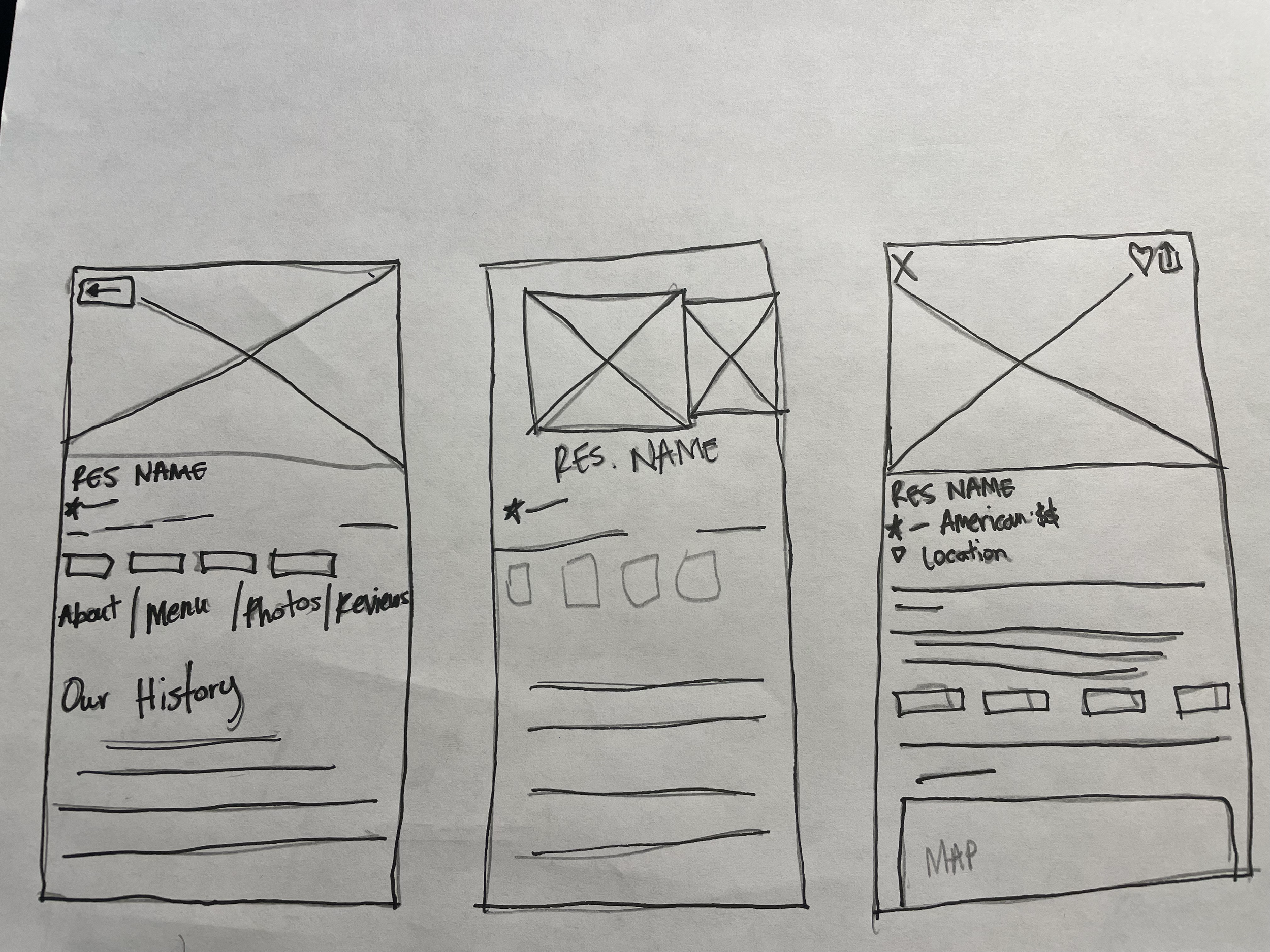 Based on the feedback received, I was able to create some low fidelity wireframes implementing some of the concepts. This allowed me to explore the many opportunities of creating this app. After sketching and balling up paper, I was able to come finalize a design I felt was user friendly based on the feedback recieved.